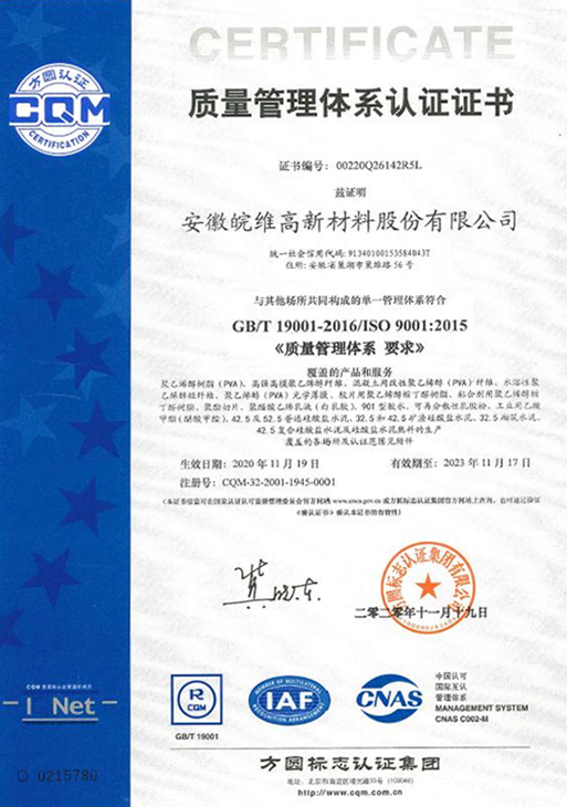 • 质量管理体系认证证书