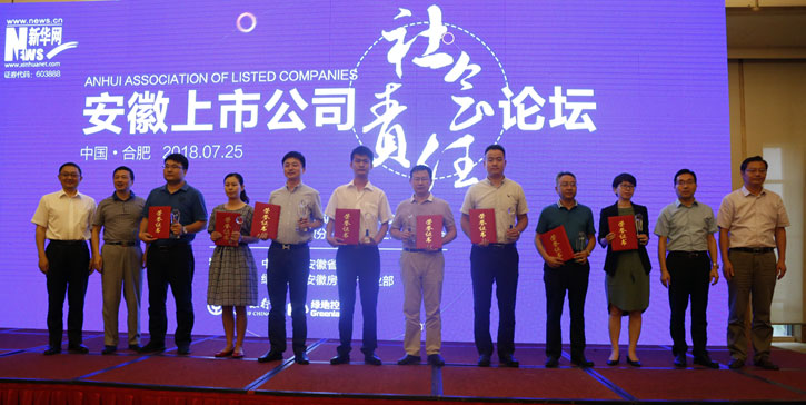 7月25日下午,由新华网、安徽证监局、扶贫办指导,新华网安徽分公司与安徽上市公司协会共同主办的安徽上市公司社会责任论坛在合肥隆重召开,会议表彰了批在“安徽上市公司扶贫在行动”活动中成果丰硕的秀上市公司,其中k8.com高新等8家公司由于在履行社会责任工作中表现积,成绩突出,被主办单位授予安徽上市公司履行社会责任“贡献奖”。